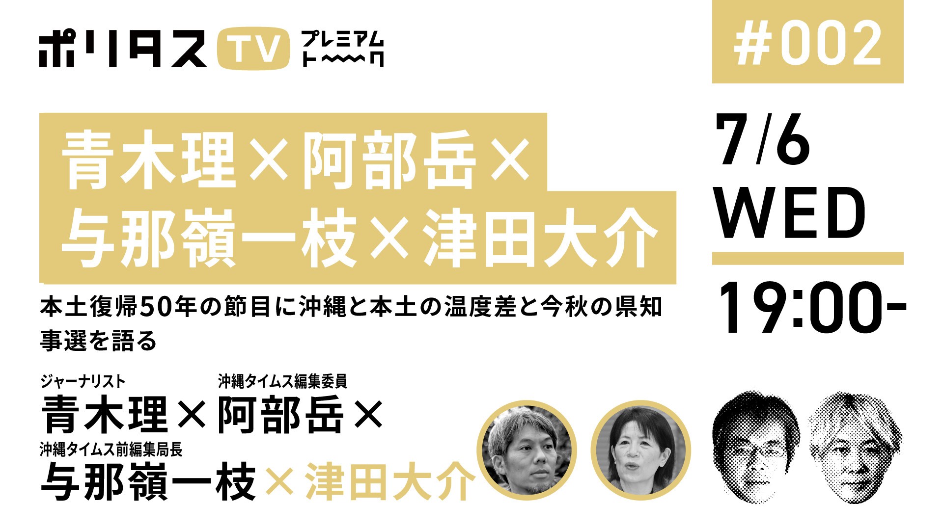 DAY1【青木理×阿部岳×与那嶺一枝×津田大介】本土復帰50年の節目に沖縄と本土の温度差と今秋の県知事選を語る【7/6】#ポリタスTV