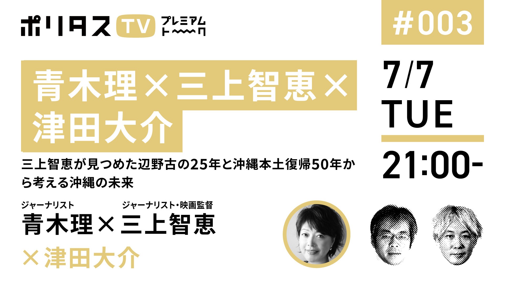 【青木理×三上智恵×津田大介】三上智恵が見つめた辺野古の25年と沖縄本土復帰50年から考える沖縄の未来