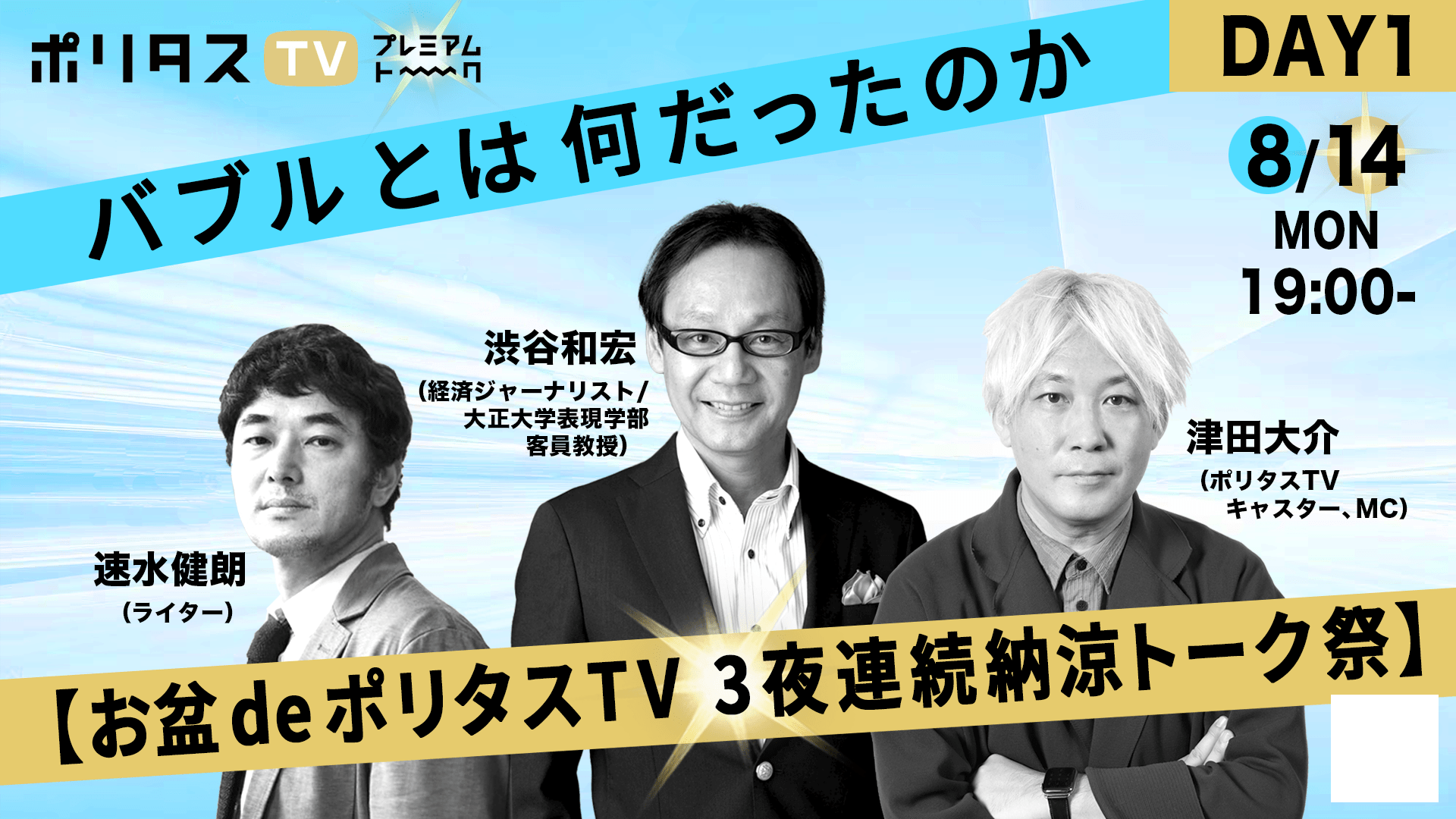 DAY1:8/14(月)19:00~ 《バブルとは何だったのか》