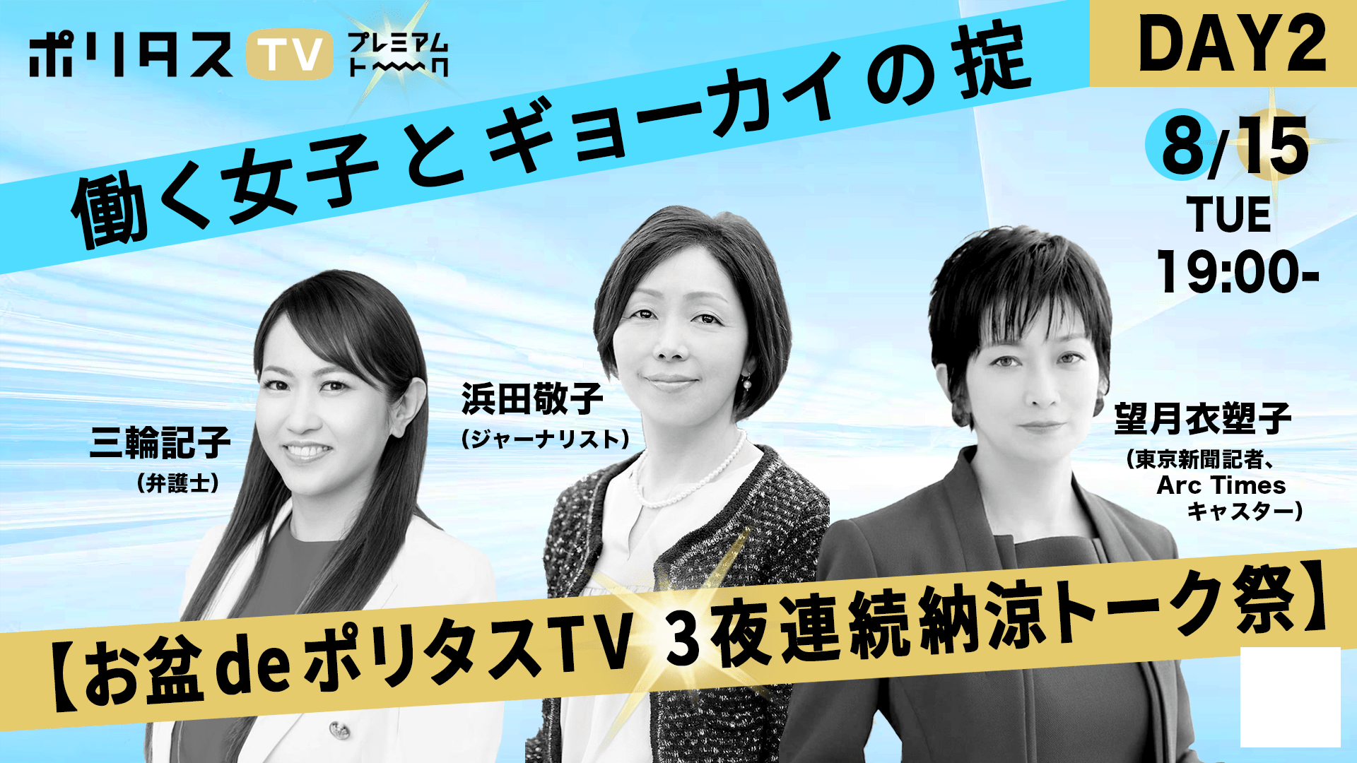 【お盆deポリタスTV 3夜連続納涼トーク祭】バブルから女性の生き方、死刑問題まで幅広くディープなトークをお届け (8/14,8/15,8/16)
