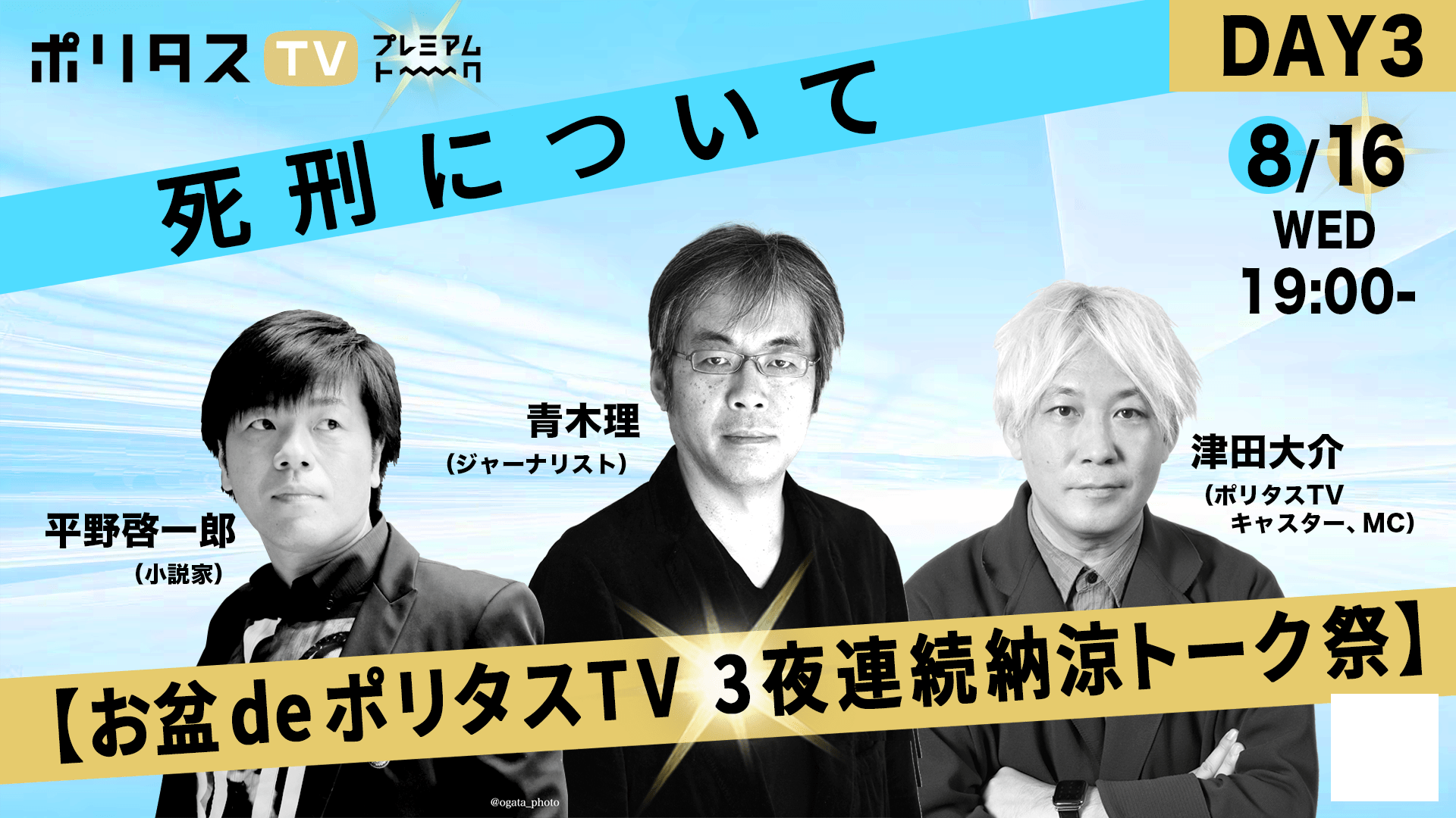 ポリタスTVプレミアムトーク第6弾は、お盆の3日間(8月14日、15日、16日)に、普段の時事問題解説とは違うディープなトークをお届け。